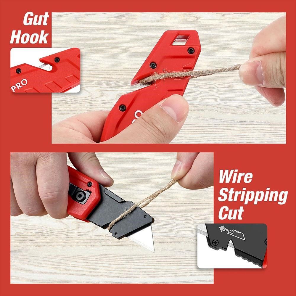 Patentli açılır/katlanabilir bıçak mekanizması sayesinde kapalı konumda ip, emniyet kemeri, uzun metrajlı naylon brandalar gibi malzemelerin kolay ve güvenli kesim yapmanızı sağlar.